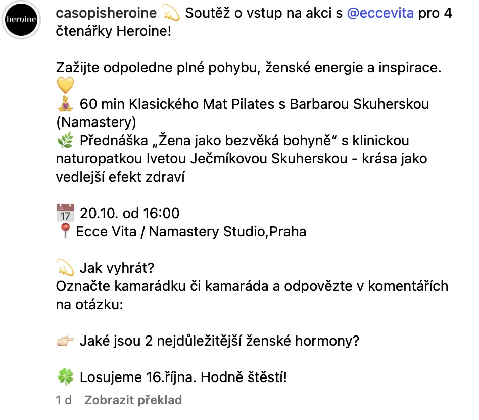 Text by neměl obsahovat nespisovné výrazy, zvláště vulgární. Textu je třeba dodržovat diakritiku a interpunkci. V textu nesmí být žádné označení jiného profilu na sociálních sítích, pouze uvedený název společnosti/produktu. K textu bude přidáno označení #spoluprace. |